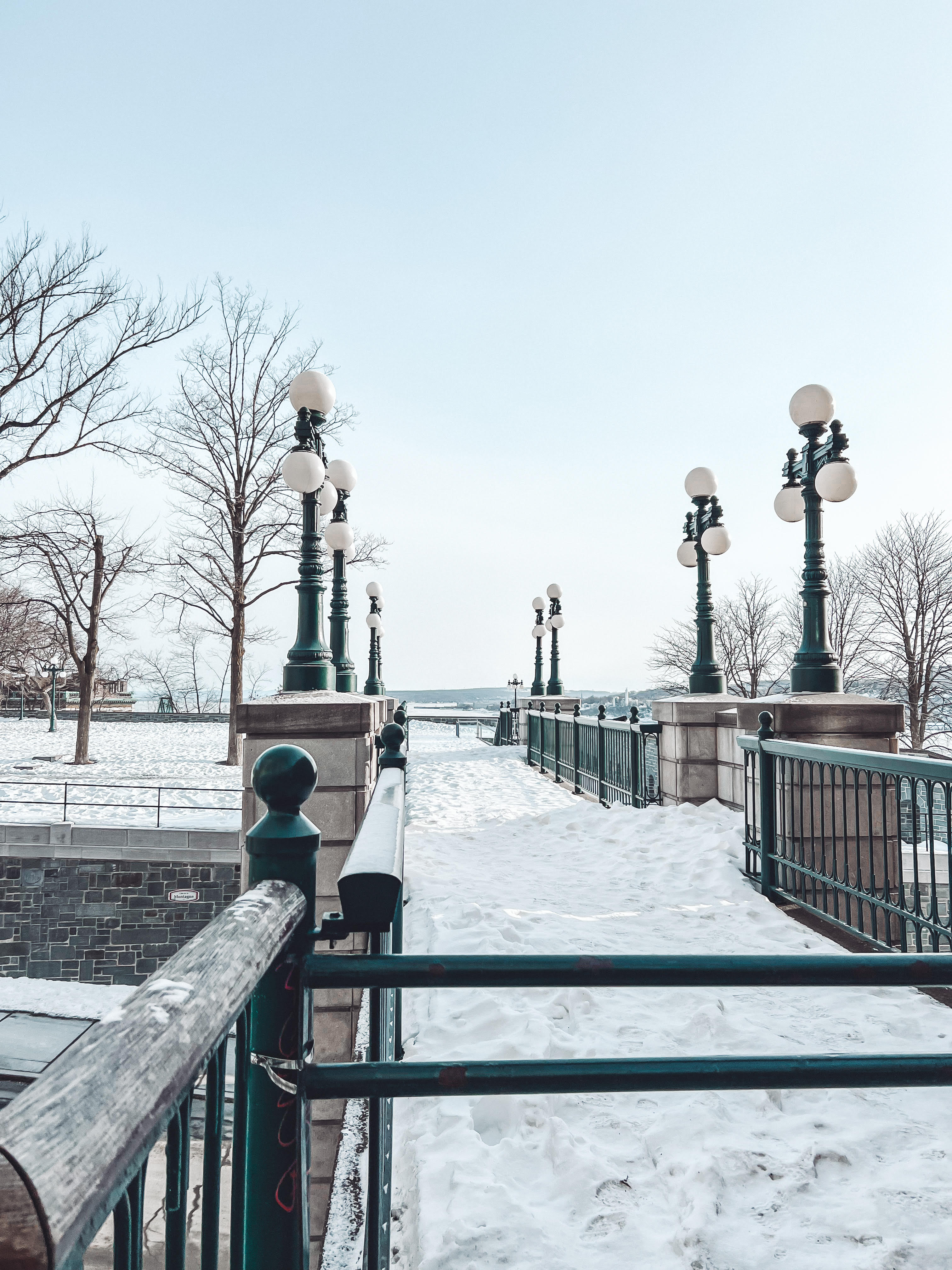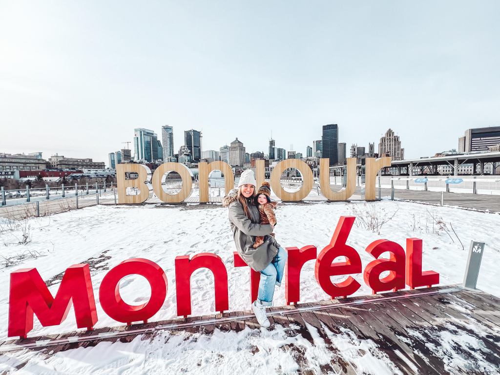 Once we were warm and full, we headed back out into the snow to go to the Montreal sign at the harbor. It was a little hard to find on maps because it’s in the back of a building, but it was a beautiful spot! There are a ton of things for kids to do around the harbor, but since Will was so little and because it was so chilly, we just took a few photos, explored, then headed home to the hotel.