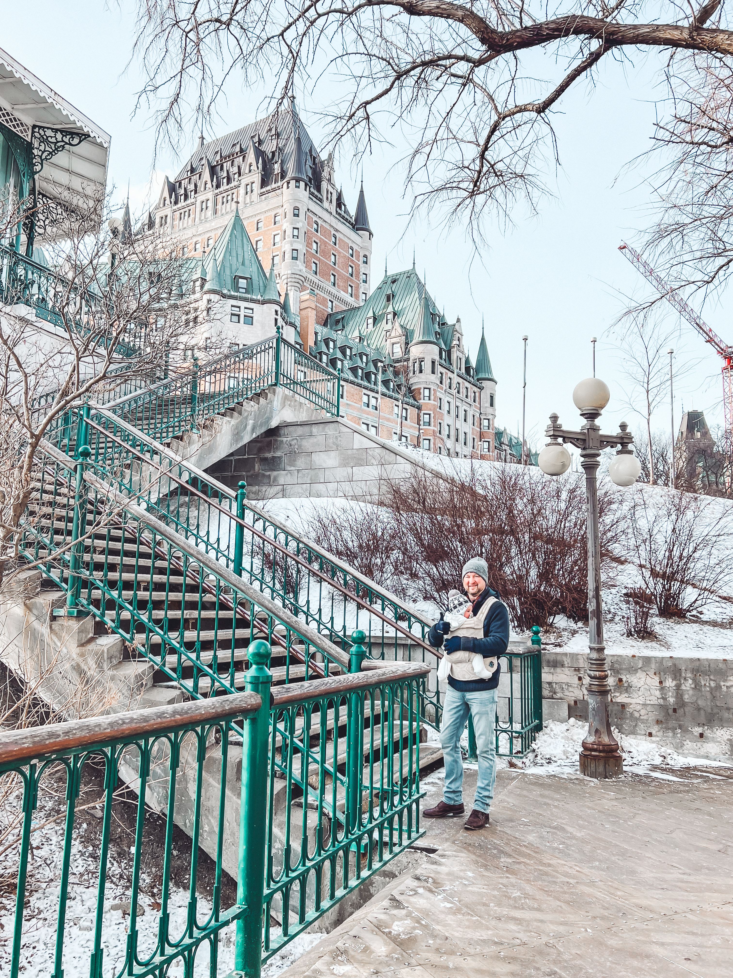 Our last day in QC was Mike’s 42nd birthday! We walked up to the Fairmont Hotel which is up on a hill in QC. There is a funicular that will take you up there faster – and more easily – but it felt so good to get a bit of cardio in in the cold! It only took about 20 minutes to walk up to the hotel and put our names in for the breakfast buffet.