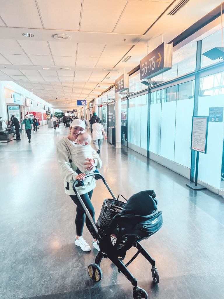 The Turo process amazing, and all we had to do was drop the car off at our gate to the person waiting for us. We popped the Doona base out (you technically don’t need the base and can seatbelt it it, but we felt more comfortable bringing the base since we’d be driving a lot) and switched it over to a stroller to get into the airport. We offloaded the 4 checked bags and breezed through security and customs.