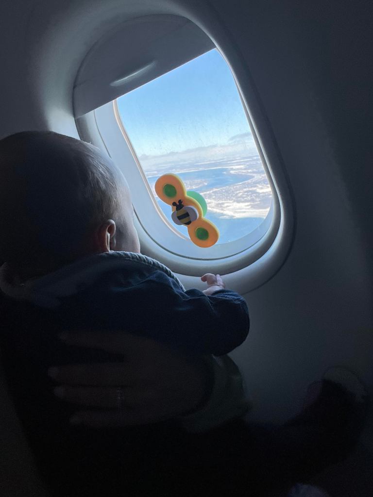 Will did such a great job on the plane! I nursed him during take-off and landing, but he didn’t seem to fuss either way. He only slept for maybe an hour each leg, but I’ll take it! He made friends with the flight attendants and had a great time looking out the window. These little stick on spinners were runner up for MVP, but we’ll probably need more in our arsenal now that he’s almost a year old.